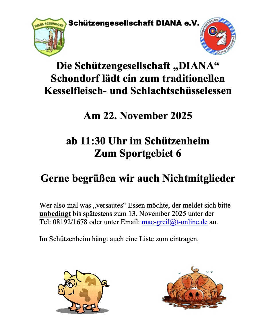 Auch in diesem Jahr findet unser gefragtes traditionelles Kesselfleischessen im Schützenheim statt!